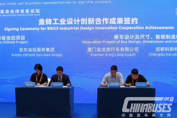 The two-day BRICS New Industrial Revolution Partnership Forum 2025 grandly opened in Xiamen, with representatives from 34 countries and international organizations gathering together to jointly plan for development and sound the clarion call of the "Greater BRICS Cooperation" era. During this grand event of industrial docking and cooperative consultation, Golden Dragon Bus and Chengdu Keruite Automotive Technology Co., Ltd. signed a strategic cooperation agreement. The "Bus Design and Size, Intelligent Manufacturing Innovation Project" jointly launched by the two parties was released as a typical case of BRICS industrial design innovation cooperation achievements. It is not only a strong alliance of complementary strengths between enterprises but also a vivid practice of BRICS countries' collaborative design empowerment.