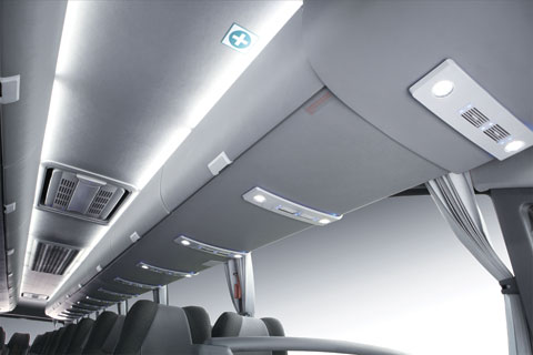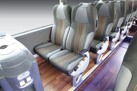 In order to meet the various requirements, customized items would be provided, such as lavatory, water dispenser, refrigerator and multi-channel A/V systems. Air conditioning and heating systems are optional for the regions of different weather conditions, like the tropic, the temperate and the frigid climate. The seats layout can be arranged for different purpose with capacity up to 53 (driver inc.), and with the option of wheel chair facility.