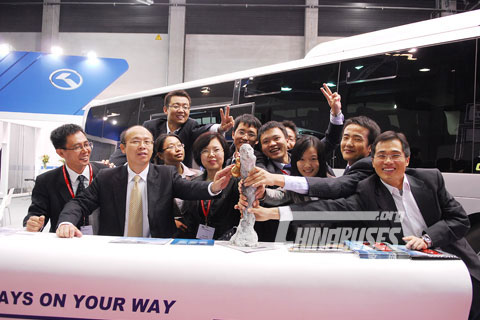 King Long attended BUSWORLD Europe for the third time, and they released XMQ6120C and XMQ6900 with Euro Ⅴ emission. And King Long Bus was awarded BUS BUILDER OF THE YEAR 2010,which is the first time for China bus builder.